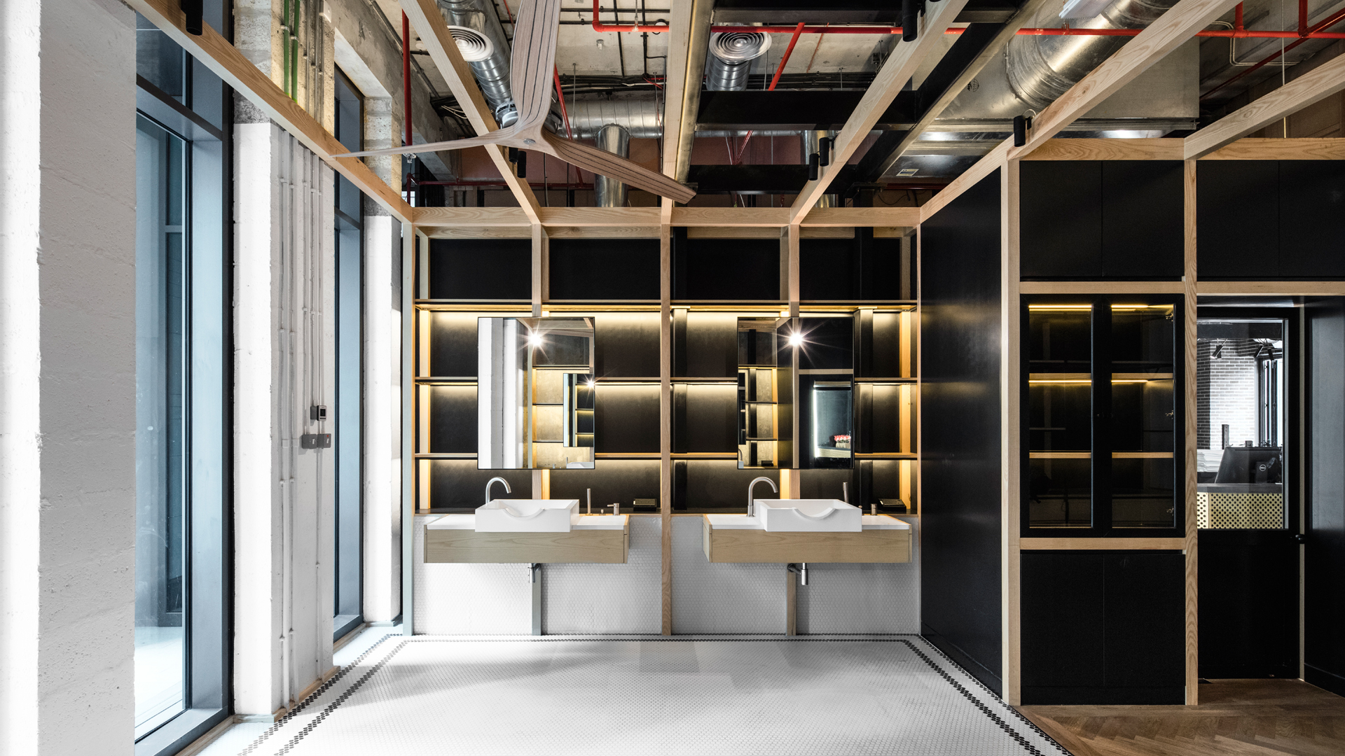 The basis of the design is both spatial and program-centric, responding to its context within an existing space and occupying a minimal 38m2 area, the Barber shop has a highly functional layout with four barber stations drenched in natural daylight from the full height slot windows.