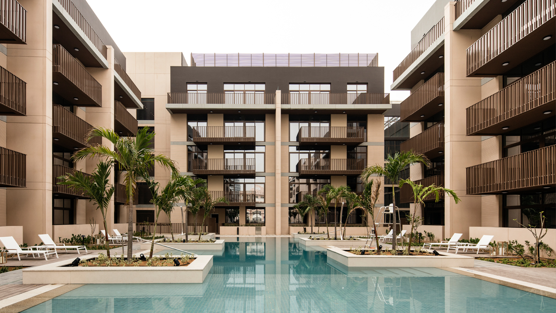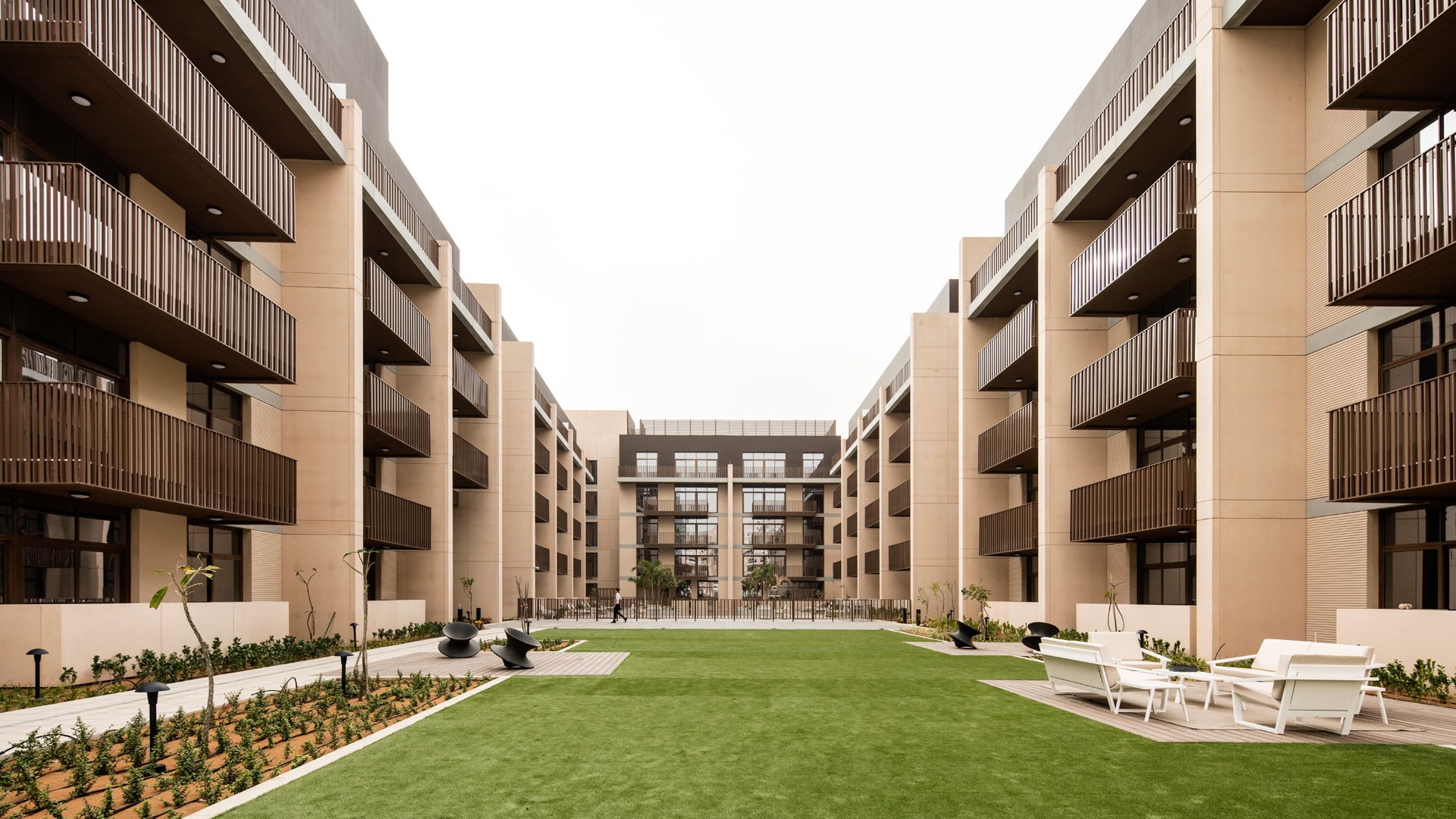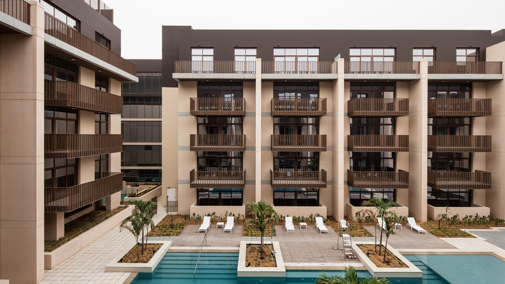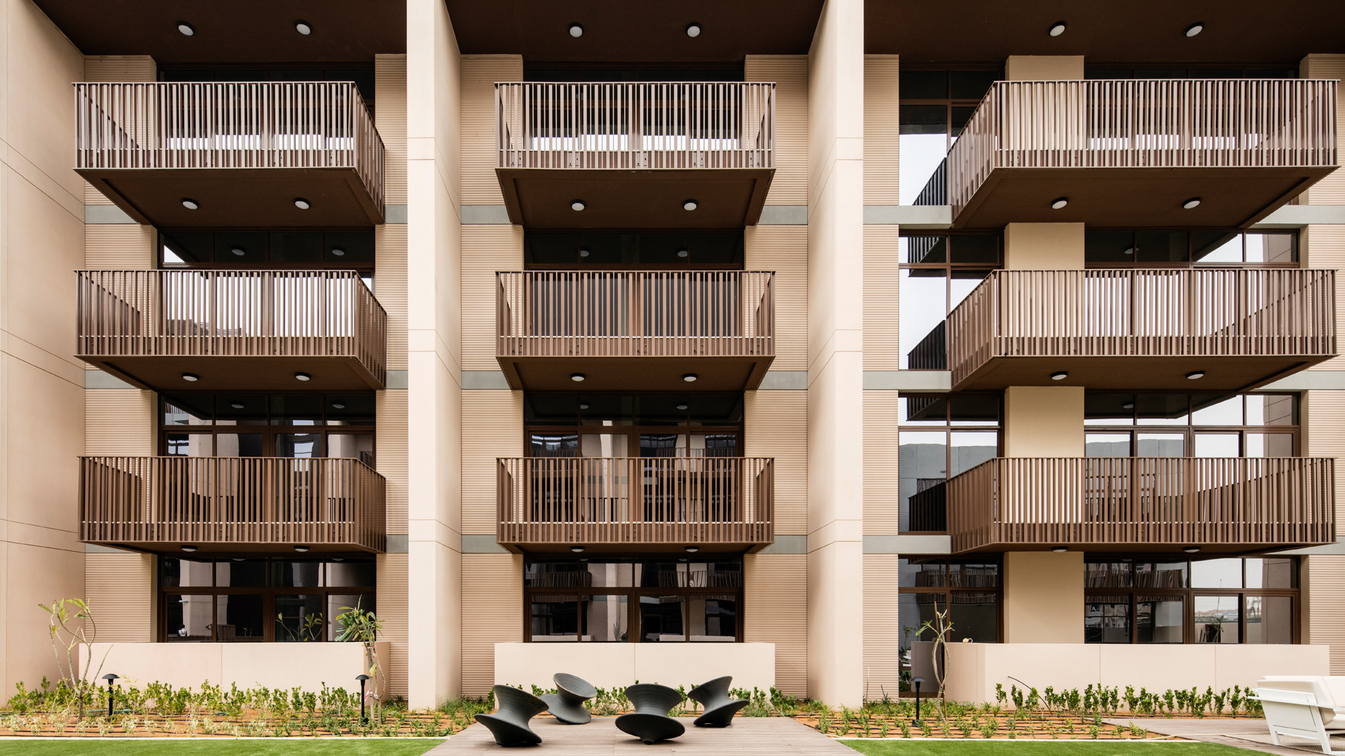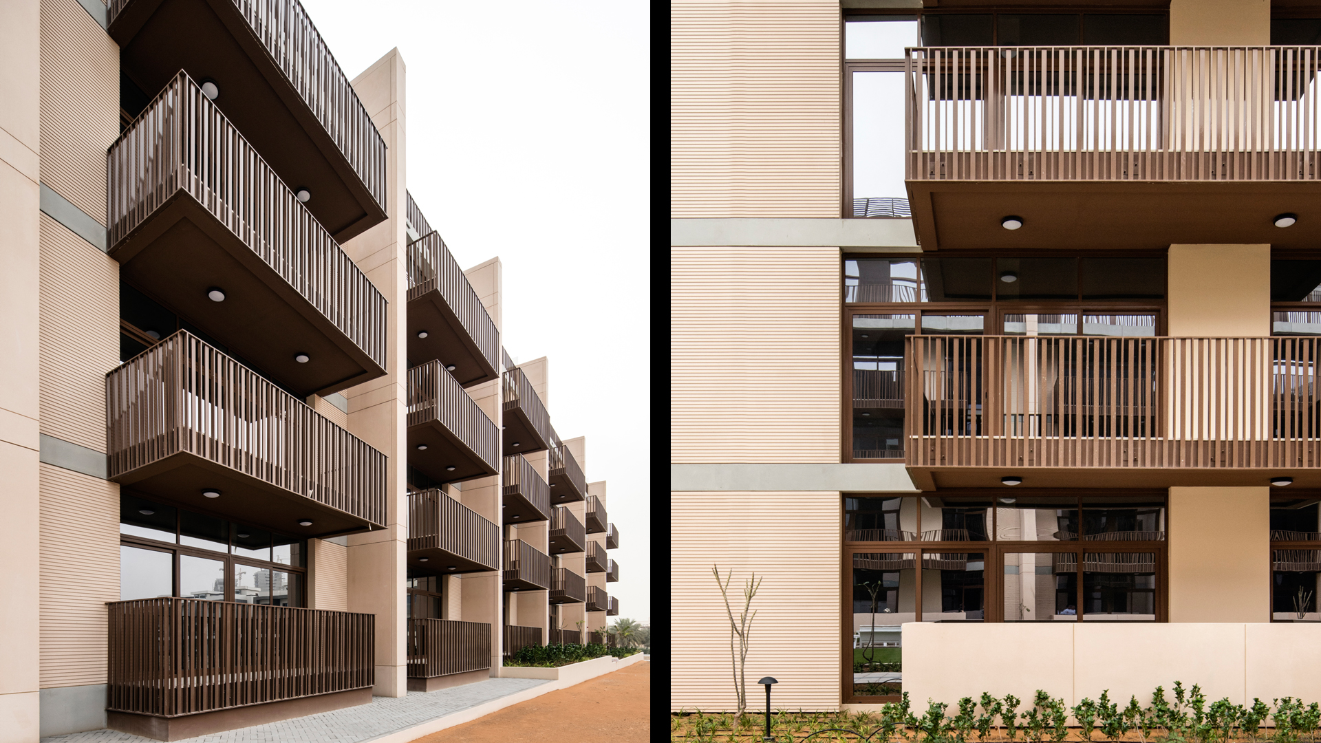 The facades are dynamic and create visual movement by way of architectural play with the push and pull of surface. The rhythm is achieved by breaking down the mass with vertical elements that allows one to easily associate the building with its function and for residents to identify their own apartment with pride.