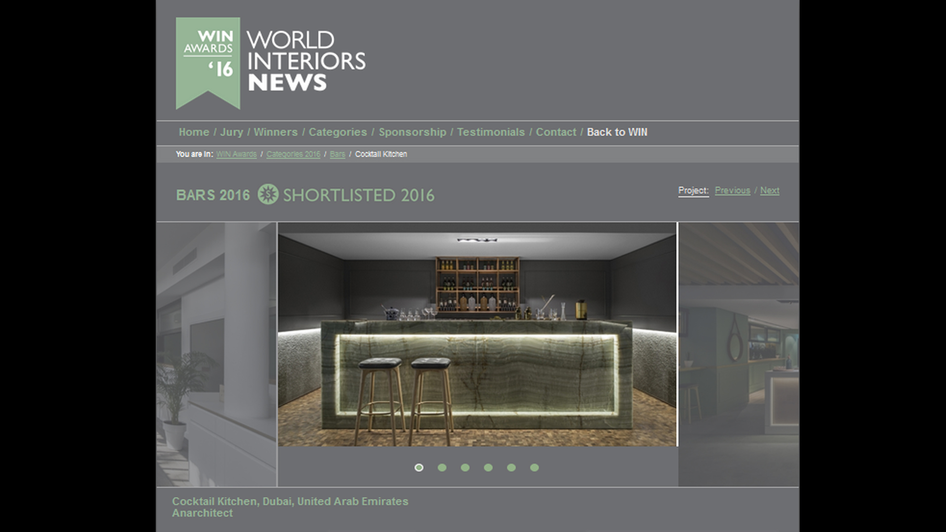 Award: World Interior News Awards (UK), Shortlisted in Best Bar Category